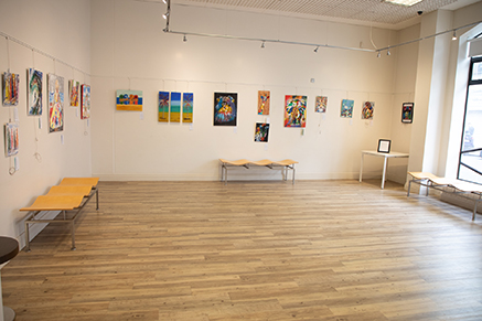 Exhibition by local artist, Ewelina Thompson, who uses acrylic paint on canvas, glass paint outlines, jewellery elements, gold leaf and gems to depict her work.
