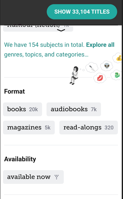 On the Libby app you can either select the format (ie Magazines) or scroll down and select Magazines.