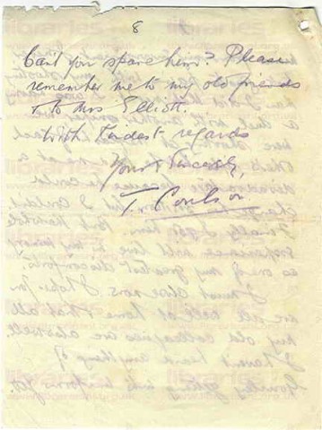 I must close now. I hope you are all well at home & that all my old colleagues are also well. I haven't heard anything of Gourley100 getting into uniform yet. Can't you spare him? Please remember me to my old friends & to Mrs Elliott.